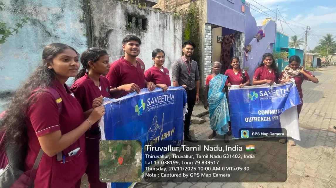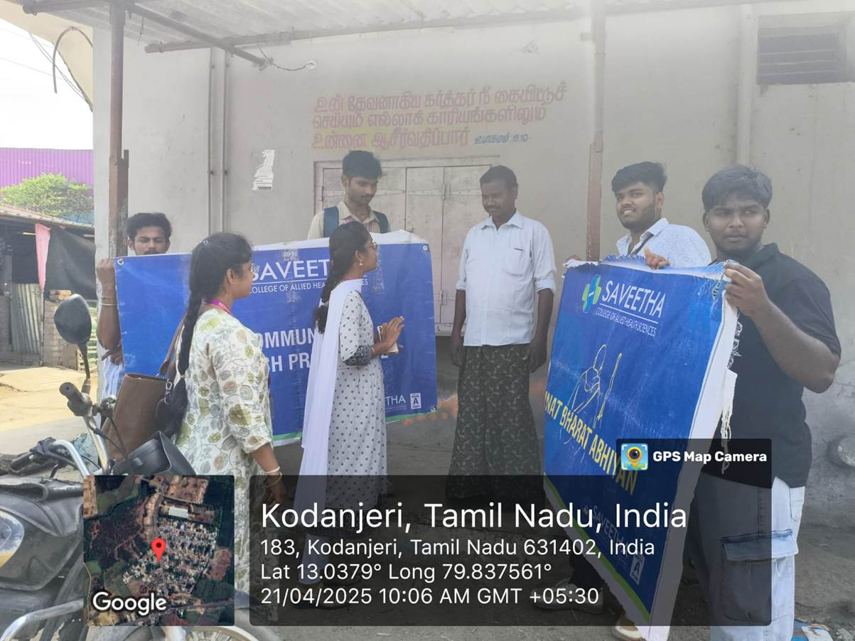 Saveetha College of Allied Health Sciences students conducted an awareness camp on vaccination and immunization in Kondanjeri Village on 05.11.25. Vaccination and immunization are powerful tools that protect individuals and communities from infectious and life-threatening diseases by preparing the immune system to recognize and fight harmful germs without causing illness. This long-lasting protection helps prevent diseases such as measles, polio, hepatitis, diphtheria, influenza, and COVID-19. Raising awareness is essential, as misinformation and fear often lead to vaccine hesitancy, putting people at risk. Immunization not only safeguards those who receive vaccines but also protects others through herd immunity. National and global health programs emphasize timely vaccination for all age groups to prevent outbreaks and save millions of lives. Every individual has a responsibility to stay informed, get vaccinated, and encourage others to do the same. By promoting awareness and understanding, we can build a healthier, stronger, and disease-free society for future generations.