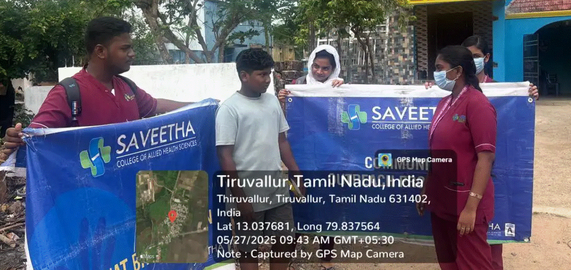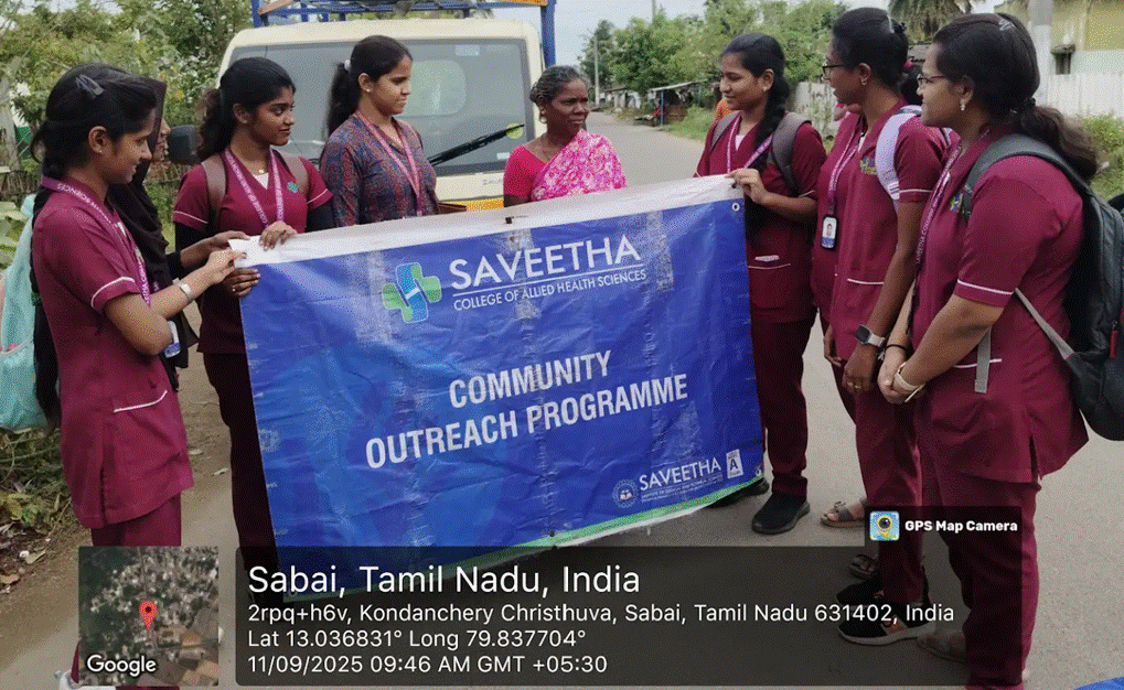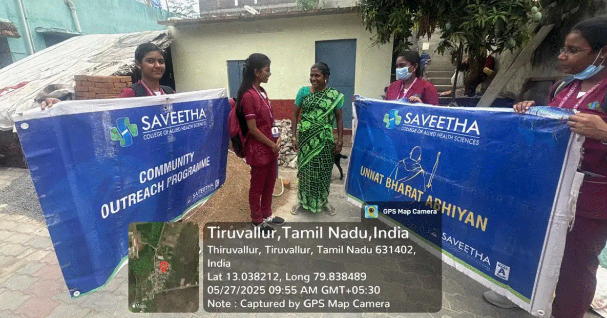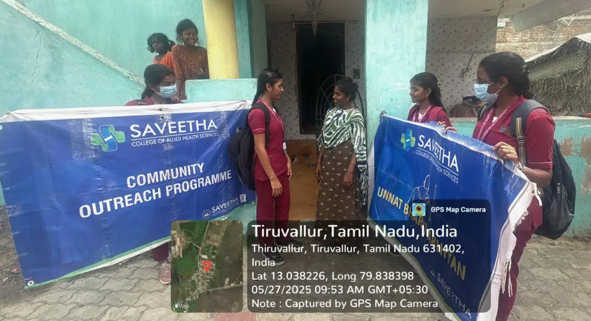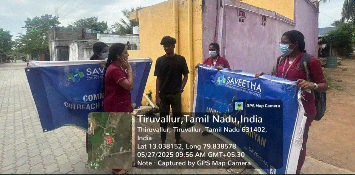 Under the Unnat Bharat Abhiyan (UBA) initiative and the community outreach program of Saveetha College of Allied Health Sciences (SCAHS), students visited the village to conduct an Awareness Program on Asthma and Basic Do’s and Don’ts. The session focused on helping the community understand asthma triggers such as dust, smoke, cold air, strong perfumes, and infections. Students educated participants on essential do’s—such as using prescribed inhalers, keeping homes dust-free, and practicing breathing exercises. They also highlighted important don’ts, including avoiding smoking, not skipping medications, and staying away from known triggers. Guidance on handling an asthma attack was provided, emphasizing calm breathing and proper use of the reliever inhaler. The program helped villagers gain confidence in managing asthma and preventing emergency situations