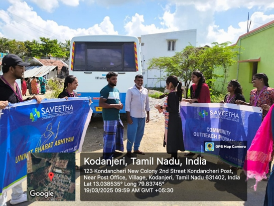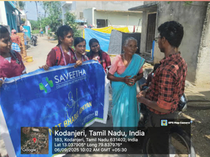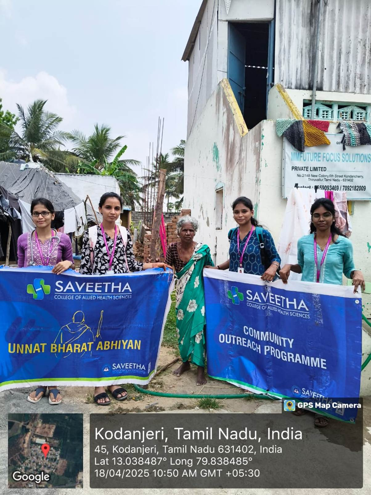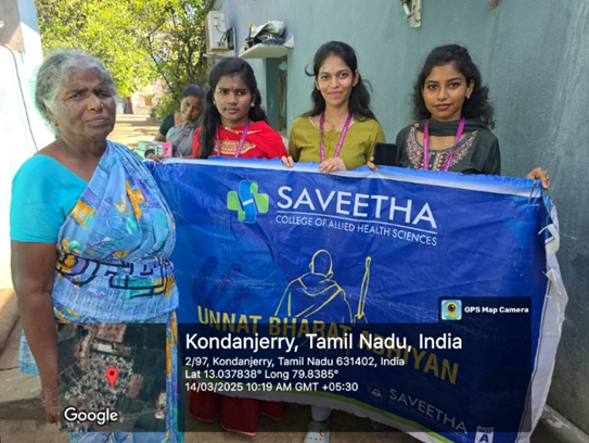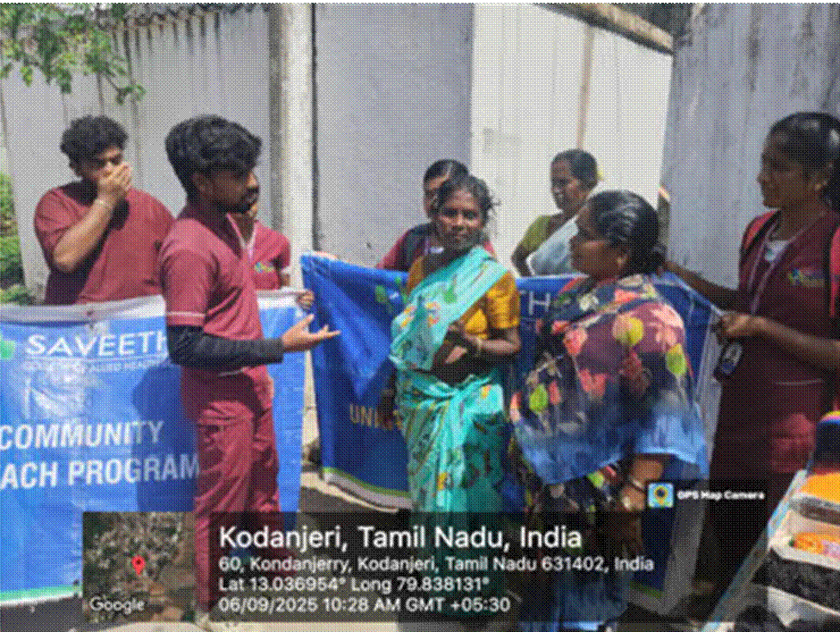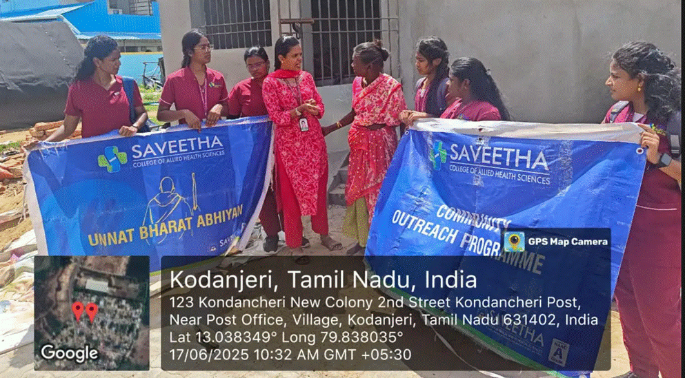 As a part of University's UBA (Unnat Bharat Abhiyan) the students of Saveetha College of Allied Health Sciences, conducted an awareness camp at Kondanjeri Village to educate the community about the importance of genital hygiene, a crucial yet often neglected aspect of personal health.