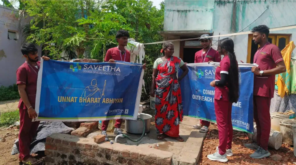 As part of the Unnat Bharat Abhiyan (UBA) initiative and the community outreach program of Saveetha College of Allied Health Sciences (SCAHS), students conducted an Awareness Program on Clean Drinking Water and Health in the adopted village. The session emphasized that access to safe drinking water is essential to prevent diseases such as diarrhea, typhoid, cholera, jaundice, and worm infestations. Students explained simple household methods for purifying water, including boiling, filtering, chlorination, and safe storage practices. They also highlighted the importance of using clean vessels, covering water containers, and avoiding water stagnation around homes. The program aimed to educate families on maintaining hygiene while handling water and to reduce water-borne illnesses within the community.