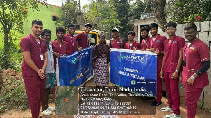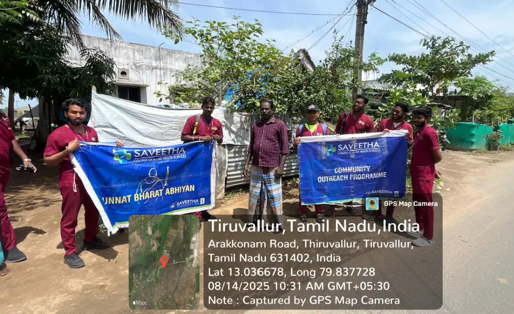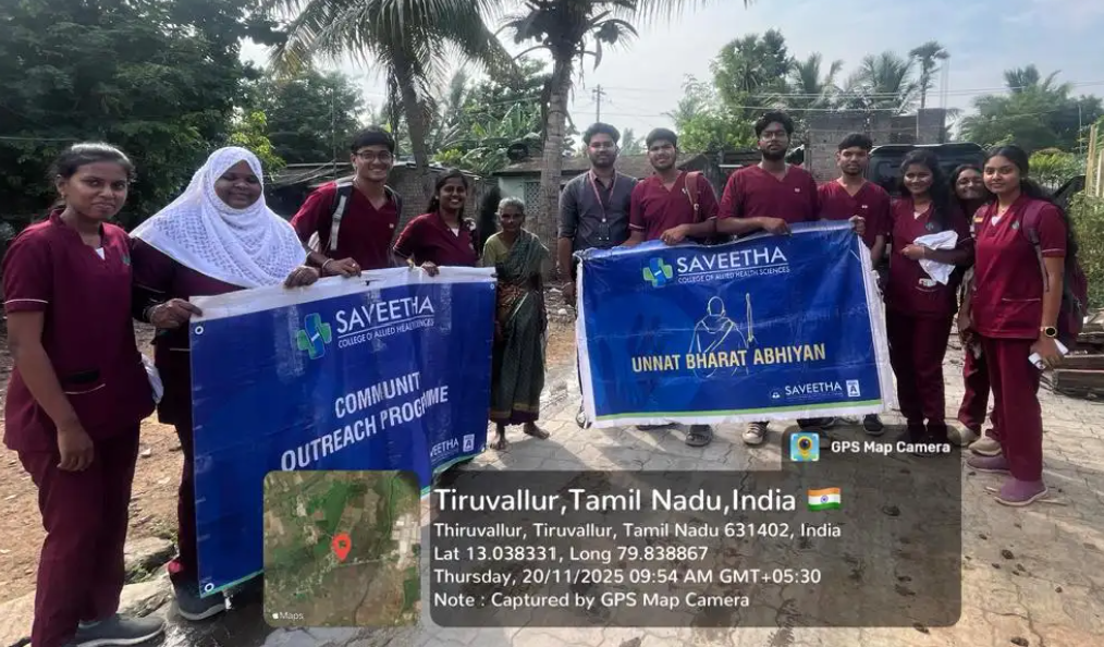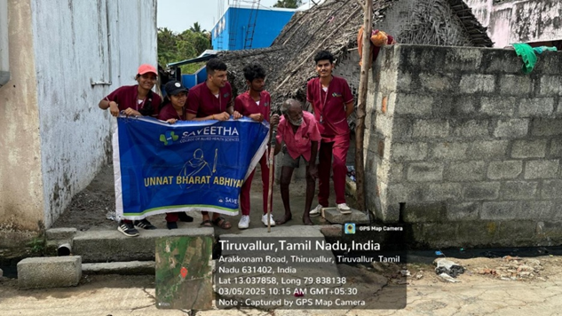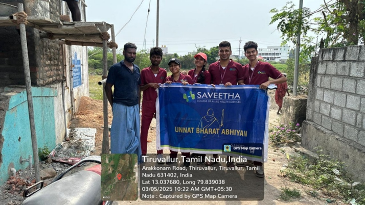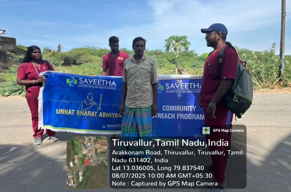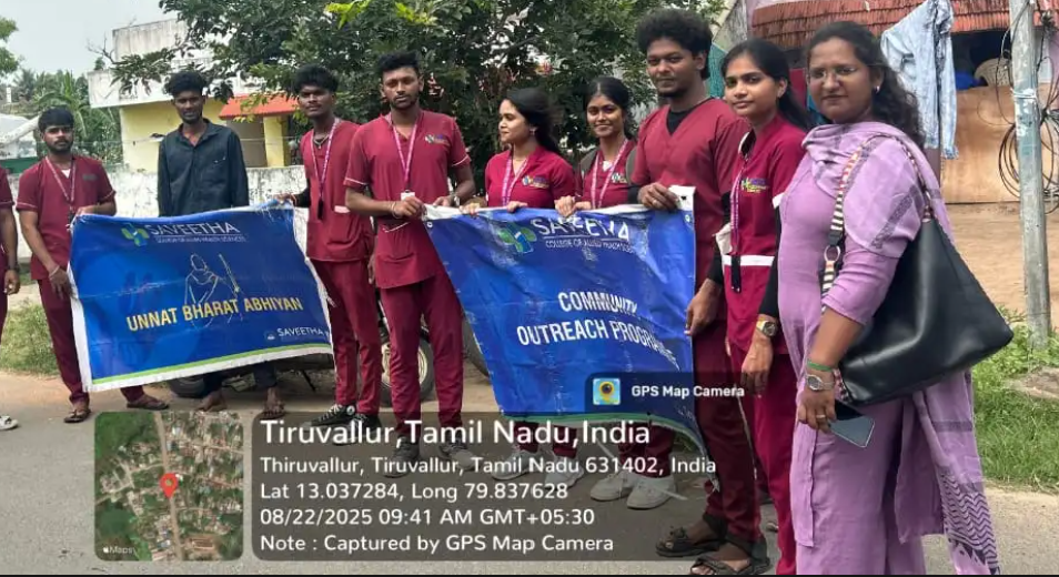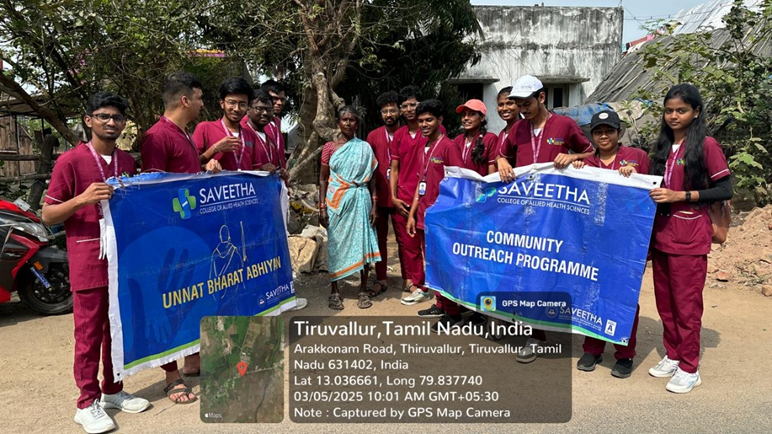 As part of the Unnat Bharat Abhiyan (UBA) initiative and the community outreach activities of Saveetha College of Allied Health Sciences (SCAHS), students conducted an Awareness Program on the Benefits of Regular Physical Activity. The session highlighted how simple daily exercises such as walking, stretching, and yoga can strengthen the heart, lungs, and muscles. Students explained that regular physical activity improves stamina, reduces stress, helps control weight, and lowers the risk of diabetes and hypertension. Demonstrations were given on easy home-based exercises suitable for all age groups. Participants were encouraged to stay active for at least 30 minutes a day. The program aimed to motivate villagers to adopt an active lifestyle to enhance their physical and mental well-being.