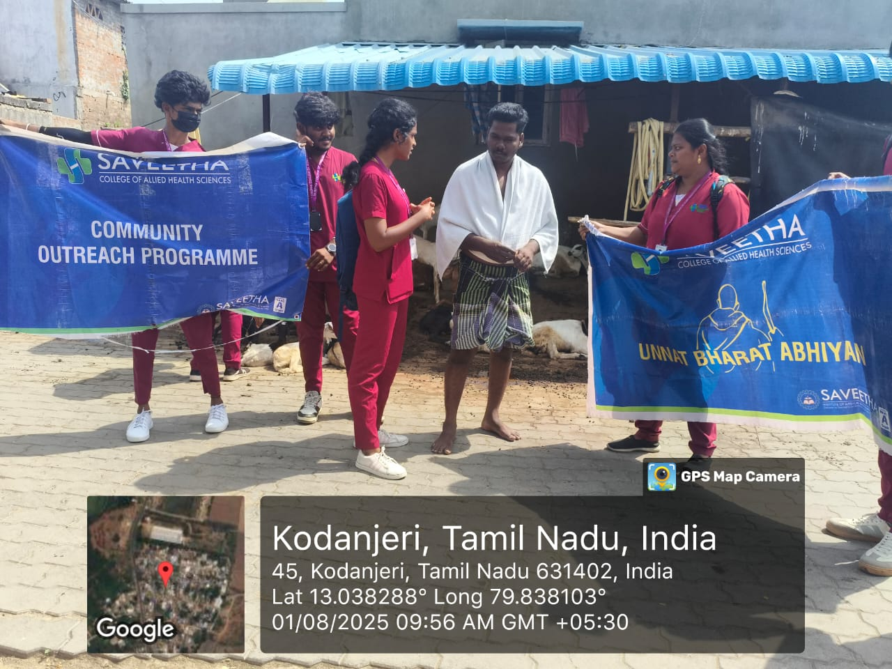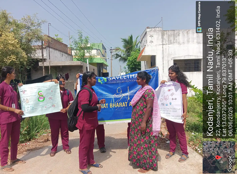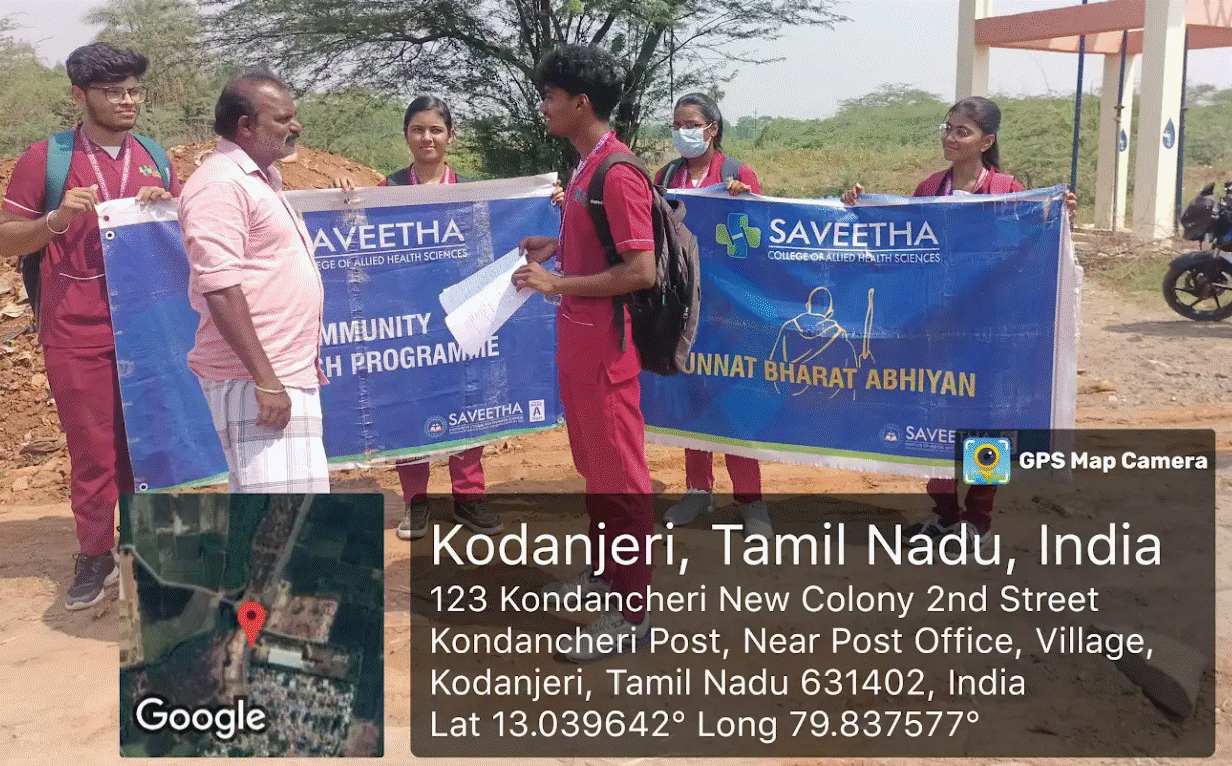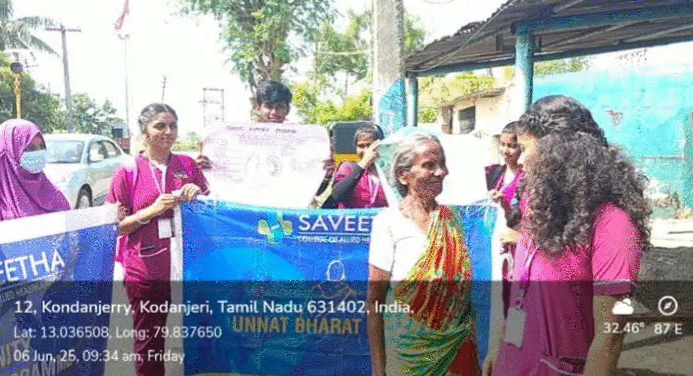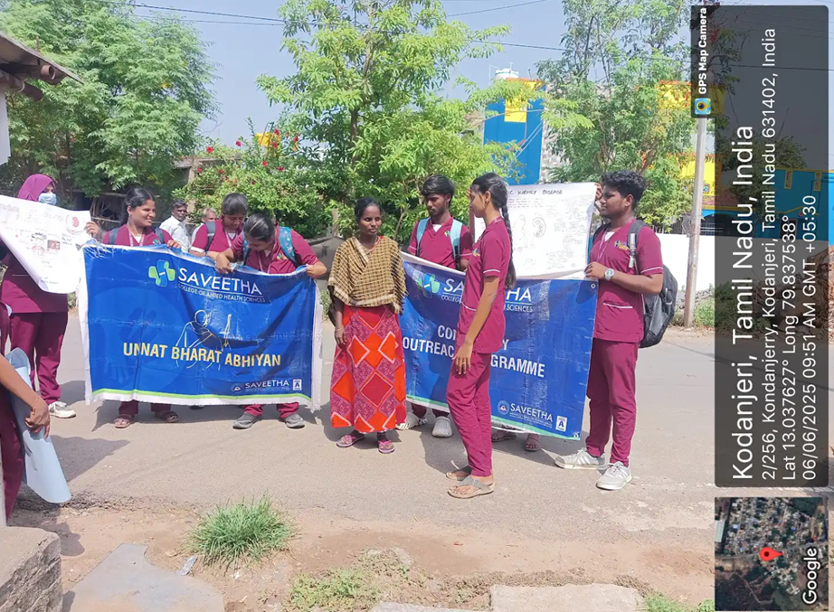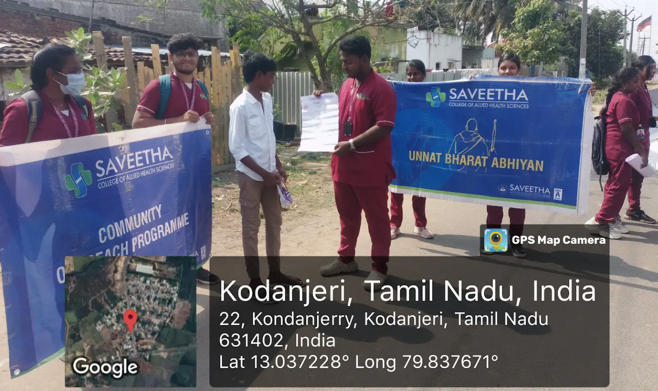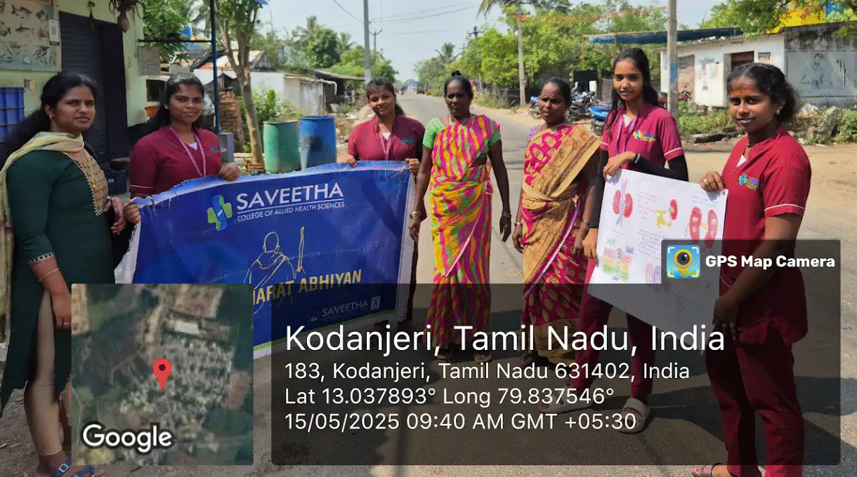 As a part of University's UBA (Unnat Bharat Abhiyan) the students of Saveetha College of Allied Health Sciences, organized an awareness camp at Kondanjeri Village to educate the local population about renal stones, commonly known as kidney stones, which are a growing health concern in both rural and urban areas.