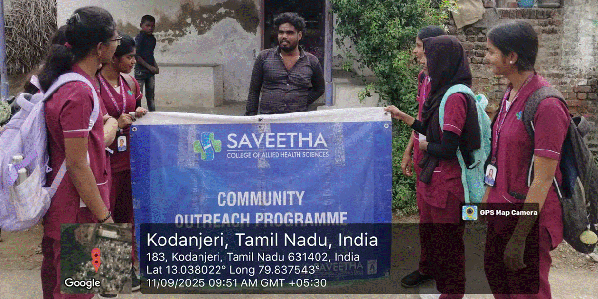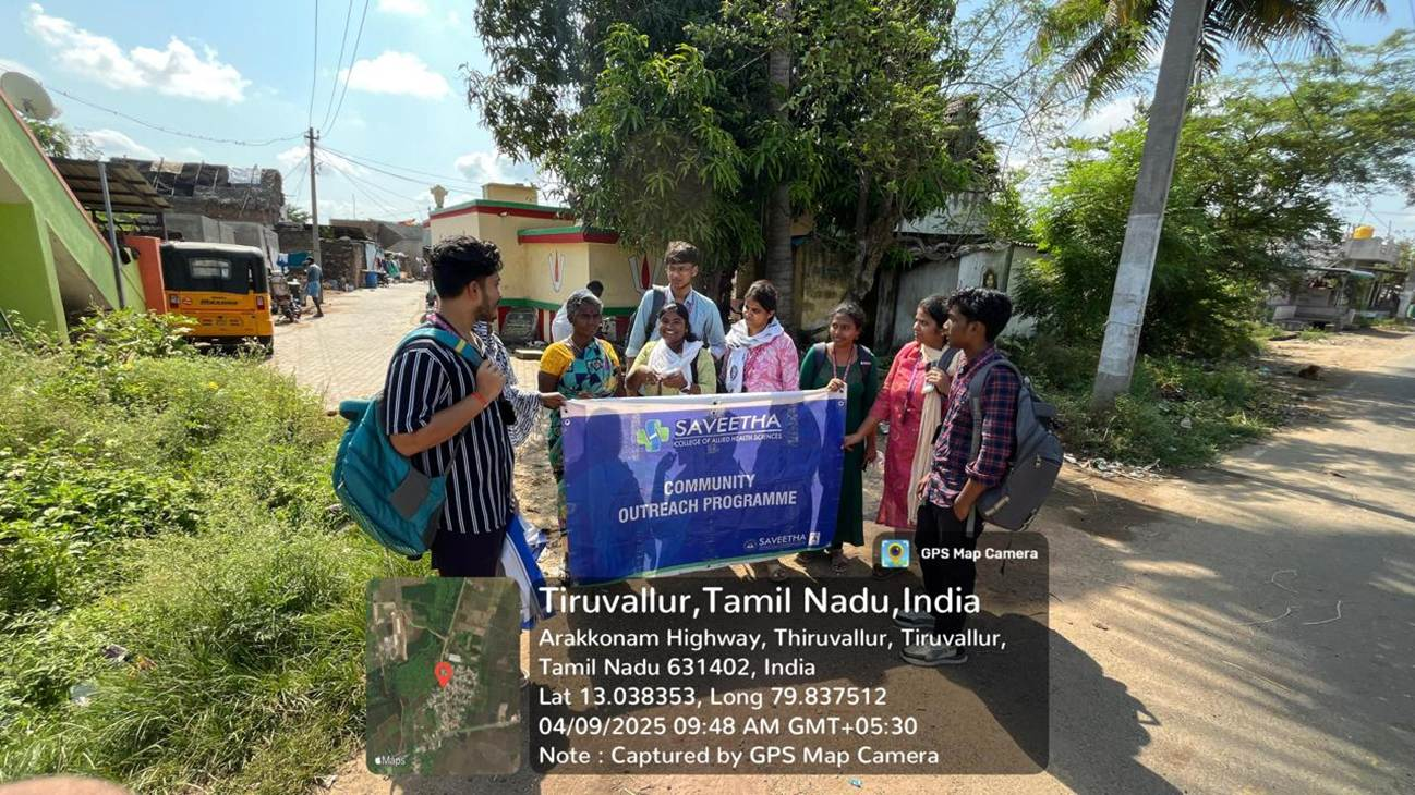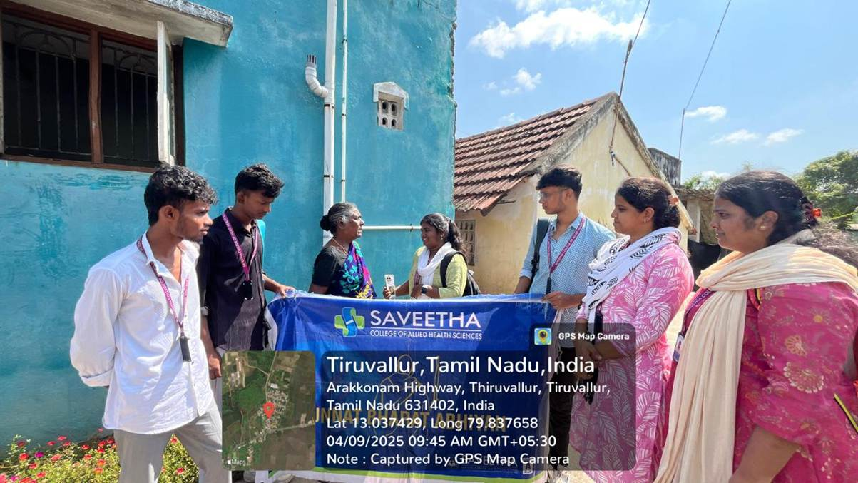 Saveetha College of Allied Health Sciences conducted the camp at kondencherry village on 05.11.2025. Awareness about PCOD (Polycystic Ovarian Disease) is important to support women’s health and early management of the condition. PCOD is a hormonal disorder in which the ovaries produce excessive immature eggs, leading to cyst formation. Common symptoms include irregular periods, weight gain, acne, excessive hair growth, hair loss, mood changes, and difficulty in conceiving. Early diagnosis and lifestyle modifications such as regular exercise, balanced diet, weight control, and stress management can help manage symptoms effectively. Medical guidance and regular check-ups are essential for treatment. Increasing awareness helps break stigma, encourages early help-seeking, and empowers women to lead healthy and confident lives.