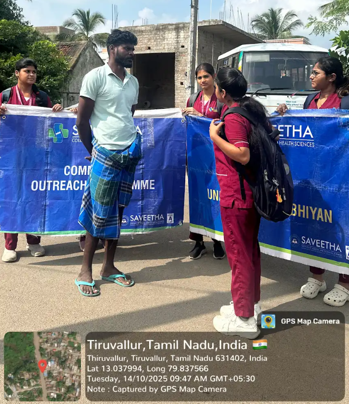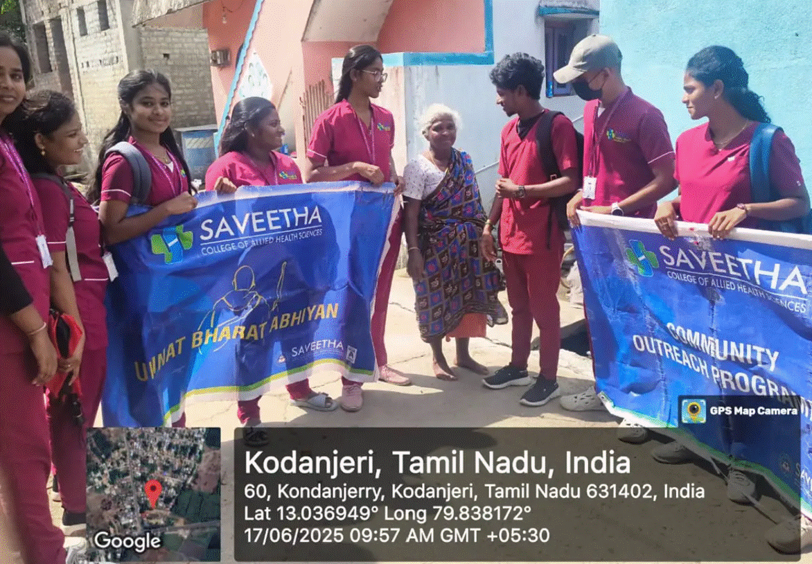 As a part of University's UBA (Unnat Bharat Abhiyan) the students of Saveetha College of Allied Health Sciences, conducted an awareness camp at Kondanjeri Village to educate the community about Lower Urinary Tract Symptoms (LUTS), a common but often overlooked condition affecting both men and women, especially in older adults.
