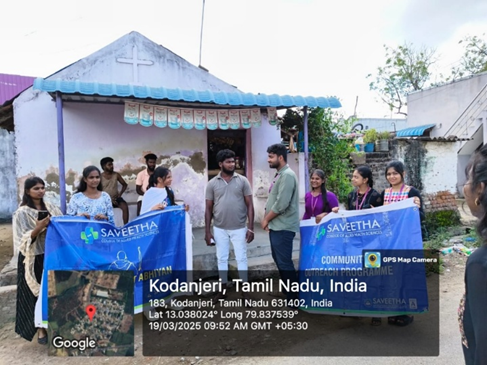 Saveetha college of Allied health sciences students conducted an awareness camp on cancer screening in kondanjeri village on 05.11.25. Early detection of cancer greatly increases the chances for successful treatment. The 2 components of early detection of cancer are early diagnosis (or downstaging) and screening. Early diagnosis focuses on detecting symptomatic patients as early as possible, while screening consists of testing