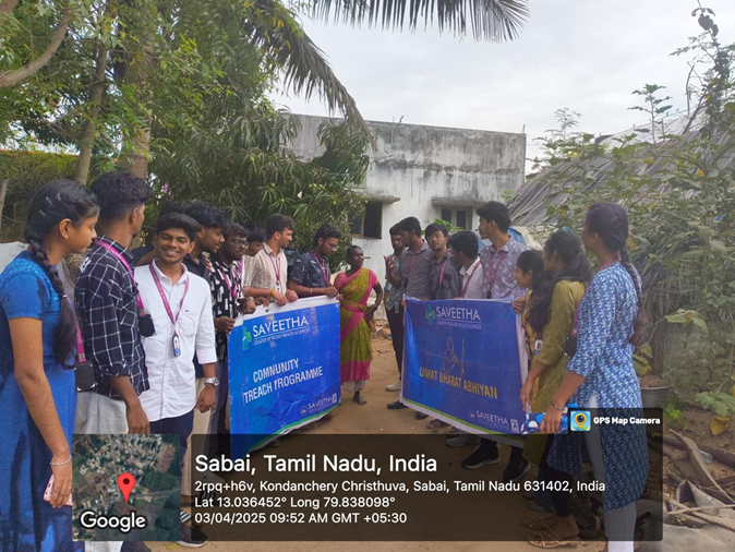 As part of the Unnat Bharat Abhiyan (UBA) and the community outreach program, students from Saveetha College of Allied Health Sciences visited Kondancherry village to raise awareness about infectious diseases, which continue to pose a significant health threat in rural areas. The aim of the initiative was to educate the villagers about various types of infectious diseases, their causes, symptoms, prevention, and treatment. During the session, the students explained that infectious diseases can be caused by bacteria, viruses, fungi, or parasites, and can spread through direct contact, contaminated water, food, or insect bites. They discussed common infectious diseases such as malaria, tuberculosis, dengue, and respiratory infections, emphasizing the importance of proper hygiene, vaccination, and sanitation in preventing the spread of these diseases. The students also provided information on recognizing early symptoms and seeking timely medical care to avoid complications. The session was interactive, with the villagers actively participating and gaining a deeper understanding of how to protect themselves from infectious diseases.